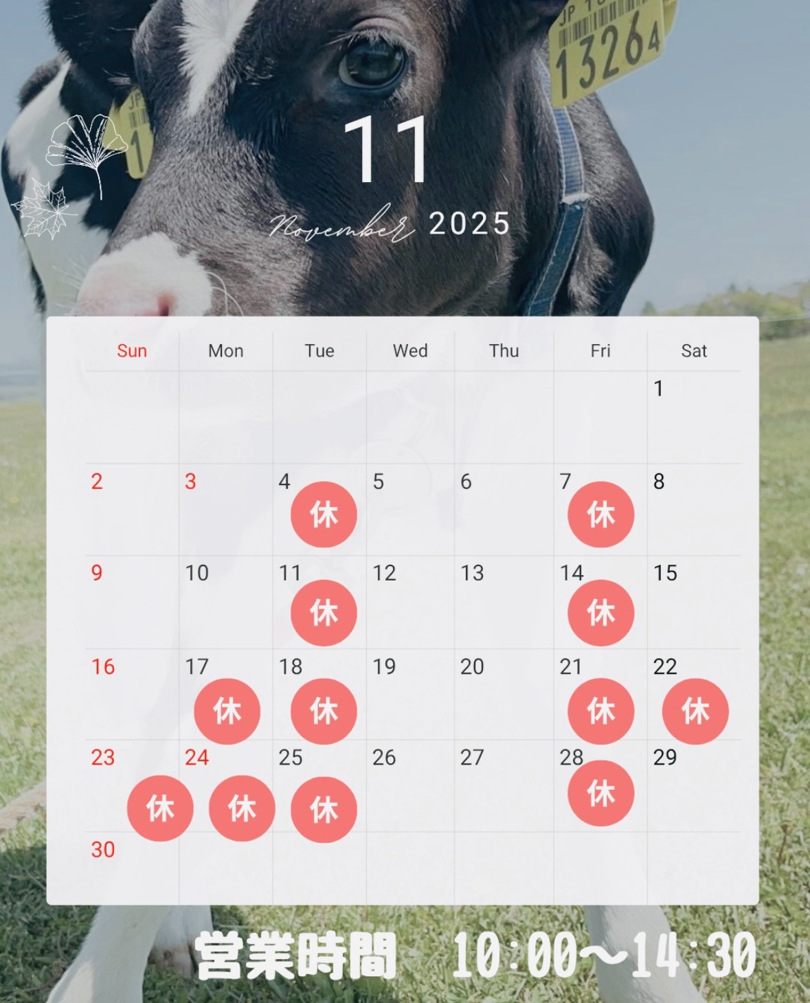 11月の営業日カレンダーを更新しました♪営業時間は、10時から14時30分
